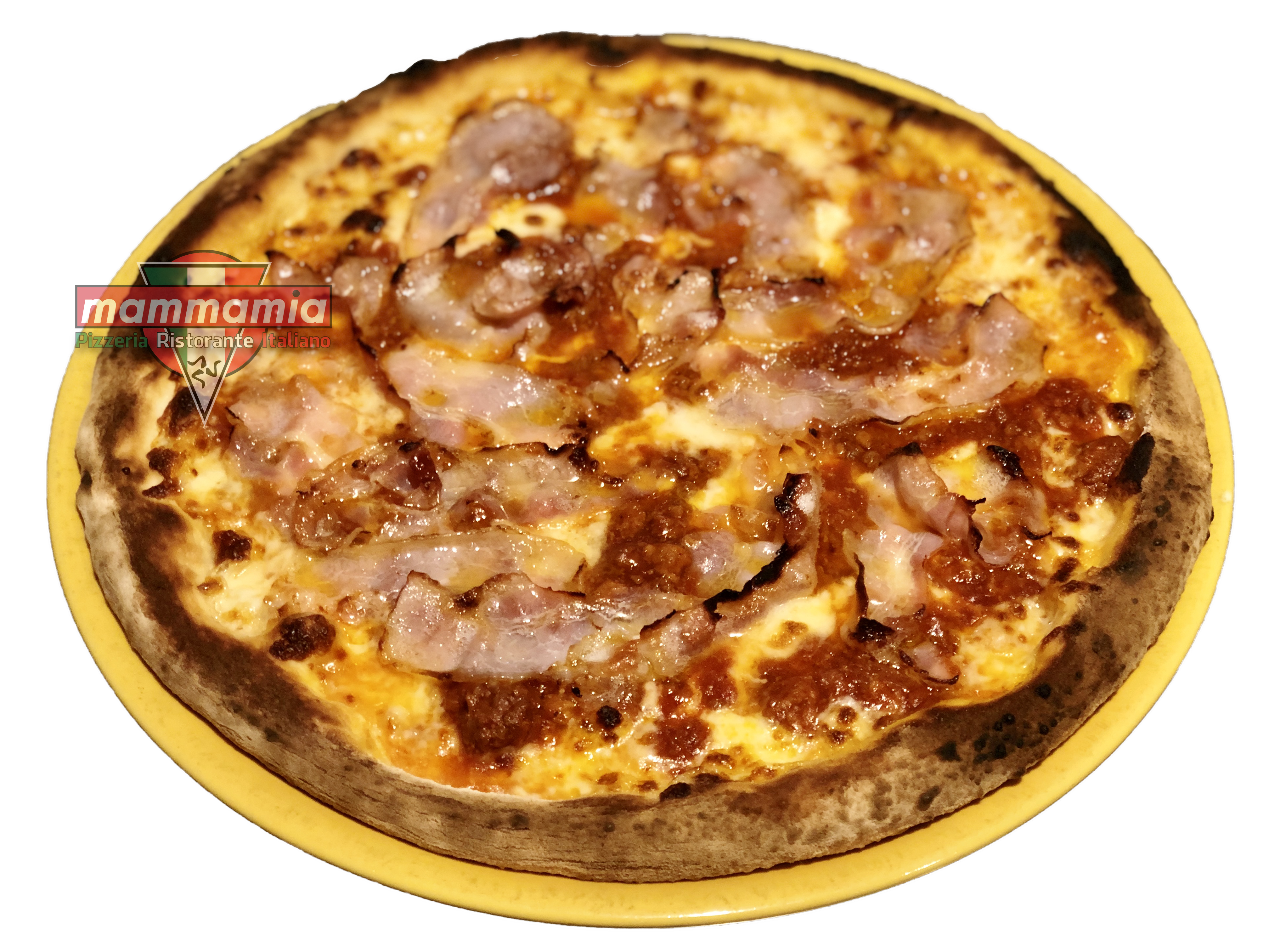 | Carbonara | Tomatensaus, Mozzarella Kaas, Ei, Bacon, Room, Zwarte Peper |