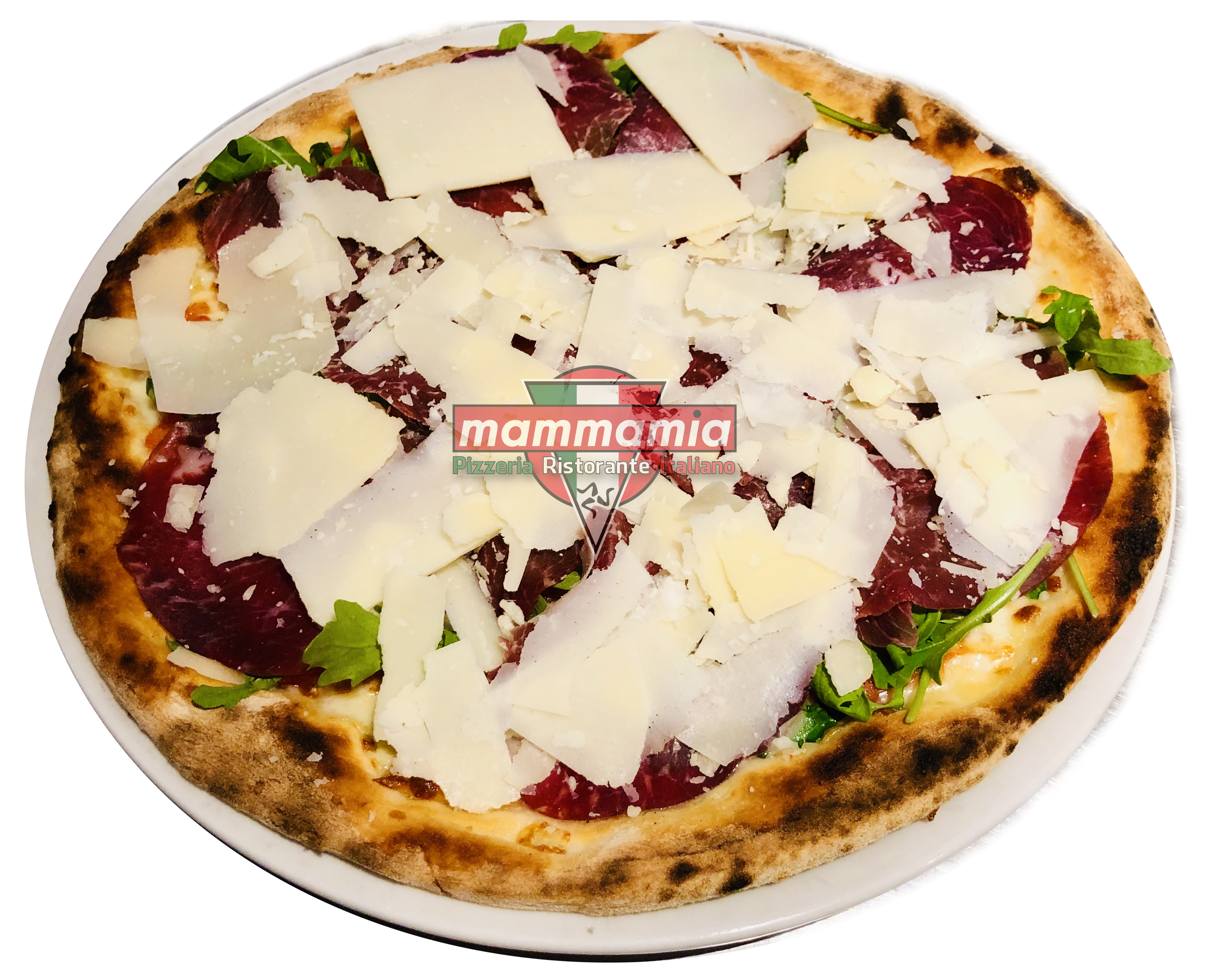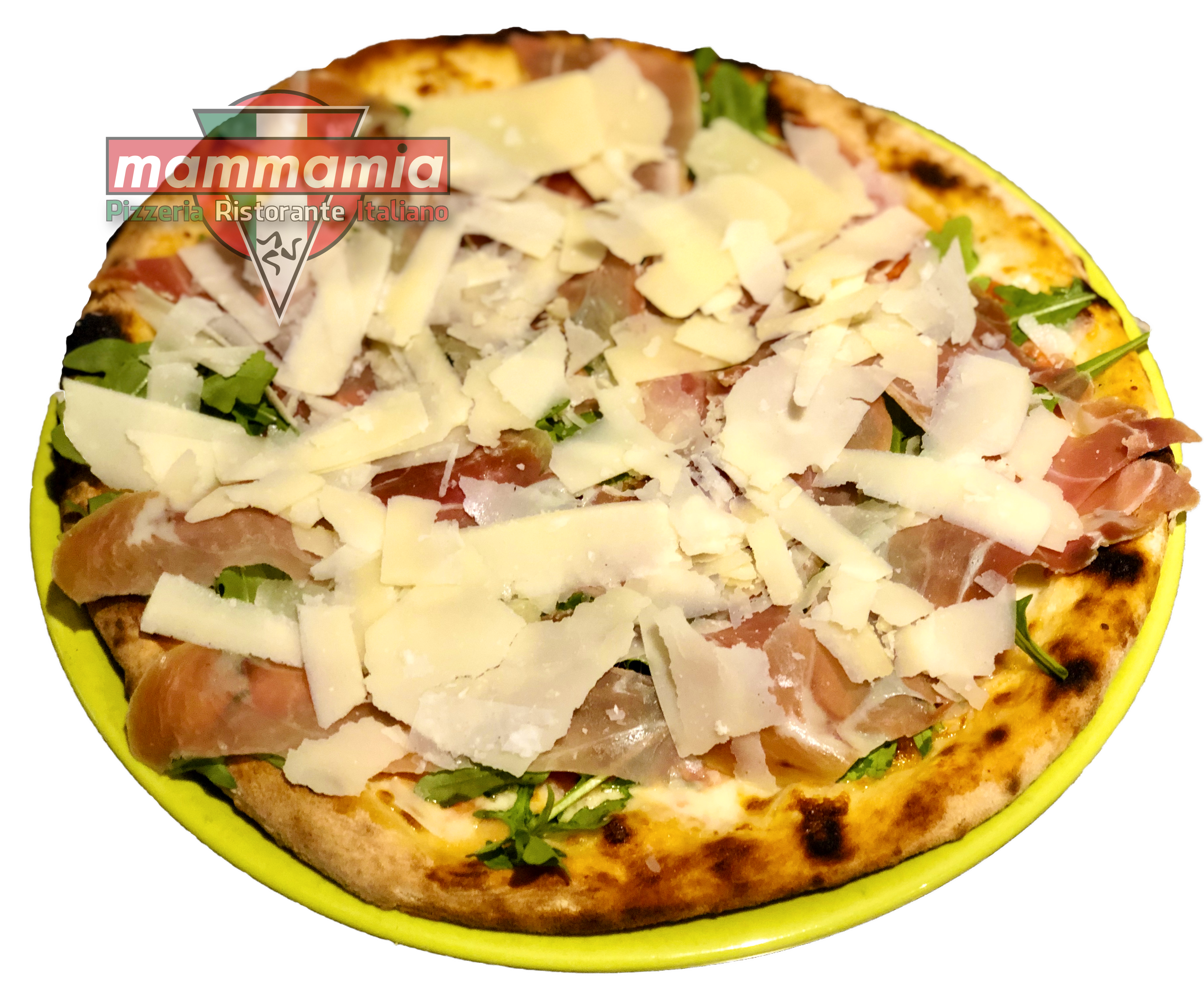 | Italia | Verse Tomaat, Mozzarella Kaas, Rauwe Ham, Rucola, Plakjes Parmesaanse Kaas |