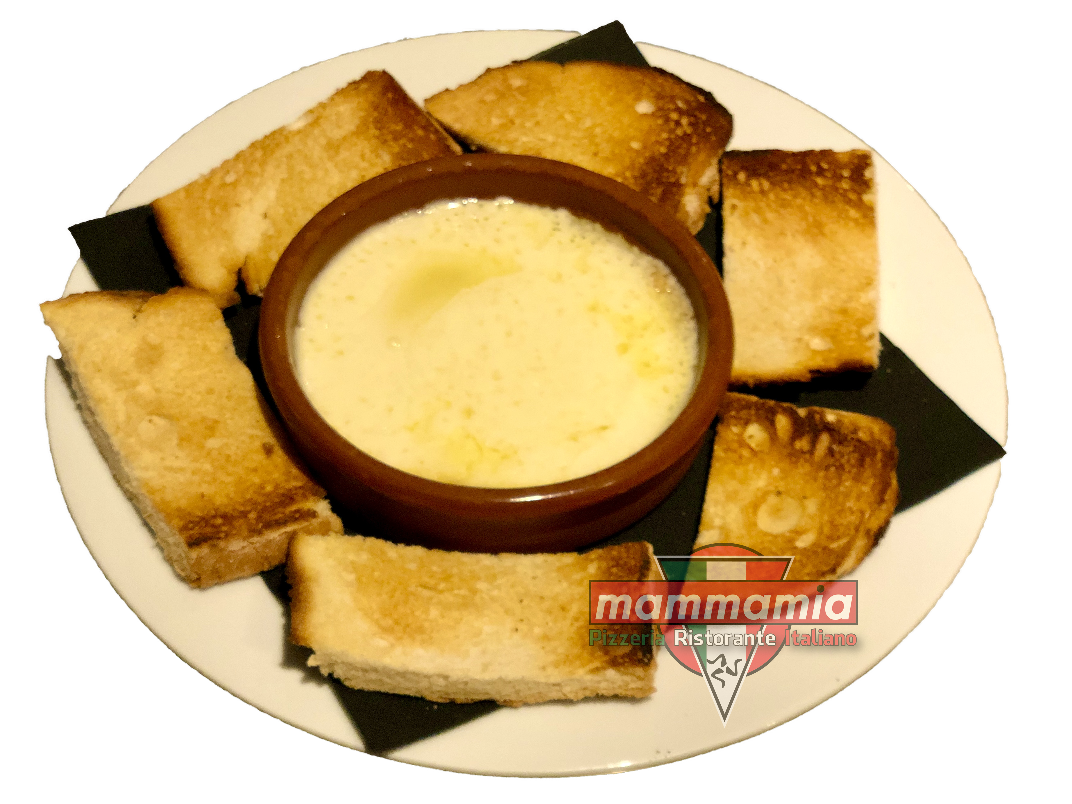 | Rustica | Mozzarella Kaas, Ansjovis, Knoflook, Zwarte Olijven, Oregano |