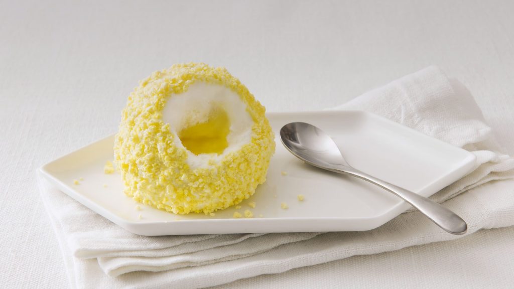 Helado de Limón con licor de Limoncello y granulado de merengue.