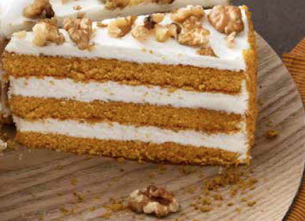 Tarta de zanahoria con crema de queso decorada con granitos de nueces.