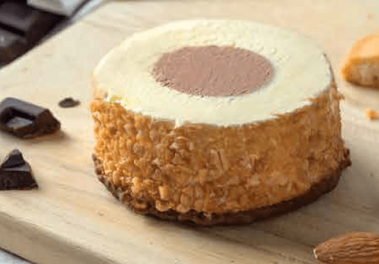 Helado de Zamballone y Chocolate rodeado con granitos de avellana y chocolate.